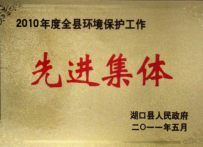 湖口縣人民政府授予“2010年度全縣環(huán)境保護工作先進集體”榮譽